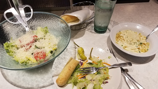 Been here on multiple occasion in the past year generally a very good experience. The last couple times we did wait between 10-15 minutes though they didnt seem busy. But Im reasonable Im sure they were busy in some fashion. Service there is usually fairly quick, we had the bread sticks and salad of course. Then a side of penne noodles with cheese. DO NOT PLAY THEIR GAMES: The kiosk may be attractive to some children but its also another $1.99 ding to the table. If youre going out probably should be spending time playing a game regardless. Atmosphere: 5 Fairly loud (not too crowded but full all across we came around 630pm) Service: 5 Consistent (Asked if we needed more water and refilled our salad) Food Quality: 5 Its a chain (But very consistent every time weve visited Cleanliness: 5 Not bad (You see staff going around cleaning) Cost: $30 - $45 average Stars: 5. Ill be back.