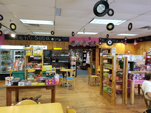 Not huge, but a nice assortment of vintage candies, flavored sodas, and an ice cream shop. Attached to the Nice MN store and Dunn Bros.
