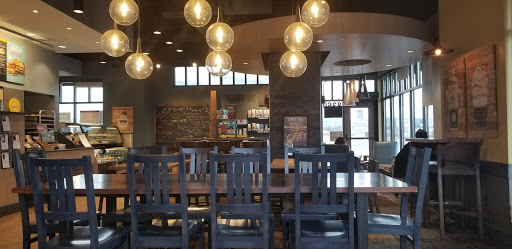 Very nice building and staff, good food at Einstein and coffee at Caribou. The atmosphere is trendy, but for a new facility offering so much, it seems to lack seating space, although there is one large table to accommodate a group. Cleanliness of the restrooms could improve, but the design is nice and up to date. Good place to stop for a bagel and coffee.