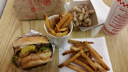 Five Guys always delivers with a delicious burger and a lot of fries! It can be a tad on the pricey side but youre paying for the quality. The free peanuts are a nice touch as well!