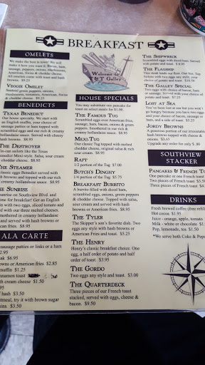 A "must try" if youre in or near South Saint Paul. Giant portioned great tasting breakfast & lunch served with a big smile! Almost everything is under $10, and definitely worth the wait if there is one. Meals to try: The Galley Special: 2 eggs, prepared however you would like. Choice of Meat, potato, & toast. All for about $5. The Tug & Mexi-Tug: American fries, peppers, onions, sausage, ham & bacon, all topped w/ scrambled eggs & hollandaise (Cheese, salsa, & sour cream on the Mexi-Tug). The Destroyer: 2 English Muffins, choice of Sausage or Ham, Cheesy Hashbrowns, Topped w/ Scrambled Eggs, Salsa, & Sour Cream.