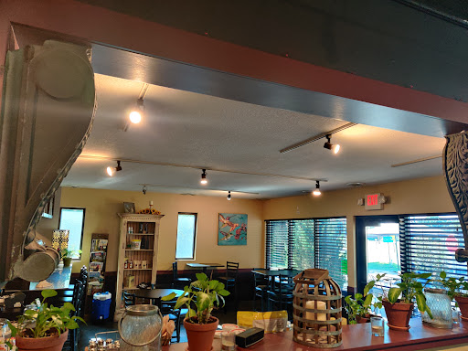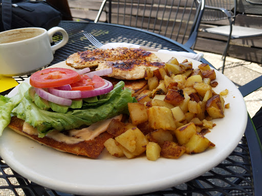 Perfect location on the new bike trail. Two outdoor patios and a comfortable indoor seating area. Everything is organic. Owner is a gregarious guy who will chat you up for as long as you care to listen, or leave you alone if you like. Everything is from scratch; this may be the only restaurant in existence that does not get a Sysco delivery. The Gyro is outstanding. The pancakes are simple but well executed. No Espresso, but they serve organic French press coffee which is a nice treat. Watch the hours. Only open 10-2 during the week and 8-2 on weekends. One of those non-chain, unique places with good food and an interesting story. A fun destination regardless of how you get there.