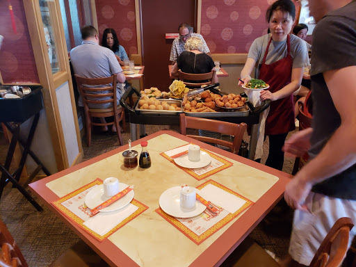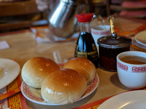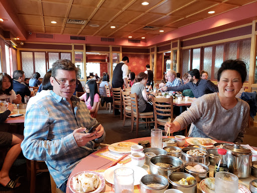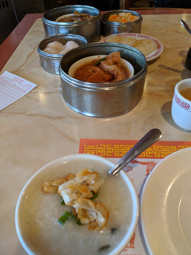 Came for dimsum on Sunday. Showed up just before 11 and only had to wait 15 minutes for a table for 4. Typical dimsum style, there are people pushing carts as well as waiters with trays. Hargow and shumai (the two dishes I consider "staples" of dimsum) were both good. Also liked their nuomiji and xiachangfeng. M ordered the chicken feet and egg tarts and thought both were good as well. They had mung bean, lotus, and red bean flavored sesame balls, which surprised me. Didnt like their xianshuijiao, but it wasnt bad. Also didnt like the BBQ pork in their steamed buns, didnt try the baked variety. Around $65 for four people. Small parking lot in front of the restaurant, but around the corner is a school parking lot which is empty on weekends.