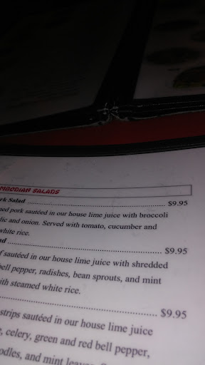 Small comfy home-feel Asian restaurant serving genuinely excellent Cambodian style cuisine with good service at very reasonable prices. About a dozen years ago I really enjoyed coming here for their lemon-grass chicken and curry fish head soup. Then I went away to live and work in Asia so you might say became a more educated and discriminating diner. The current management have expanded, doubled the number of tables, kept the Buddhist Cambodian deco and done a lot of work on their menu, cleaning up, simplifying and modernizing it but best of all, worked a remarkable improvement upon the food they serve. Their lemon-grass chicken for example now goes under a slightly different name and is available with beef, pork or seafood with improved presentation. Their lemon-grass sauce is perhaps the best Ive ever tasted, the flavour is rich and deeply infused, addition of crushed peanuts gives it a nutty character and bit of a crunch. Am returning soon to explore the menu more. Highly recommend!