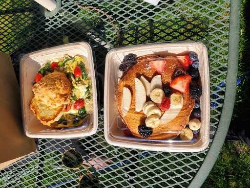 Great food and friendly service. I ordered a pancake with fruit, expecting a fruit cup, and instead a beautifully arranged mountain of fresh blueberries, raspberries, strawberries, banana and apples arrived on top of my pancake. The yeast pancakes had a fresh donut flavor, though I wish they would offer a buckwheat or hearty grain version. That would be five stars. Before, Ive had amazingly flavorful frittatas and their homemade biscuits are sublime , crunchy exterior with warm squishy centers, the best conduit for butter and honey. Choose a seat close to the coffee, because it can be a bit of an obstacle course to get your own refill.
