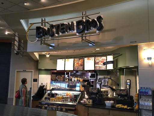 Poor service and very slow. The employees couldnt care less how long you are waiting, and dont even pretend to smile or communicate clearly. I dont think I could move that slow if I tried. Stay away from this airport Einsteins.