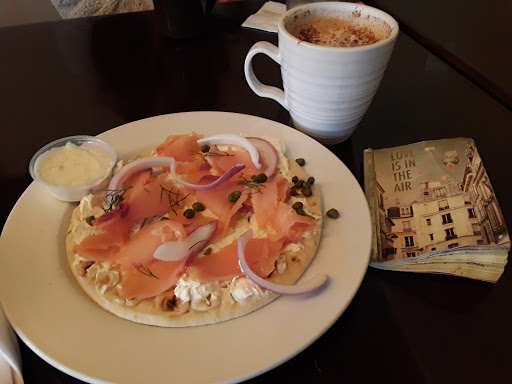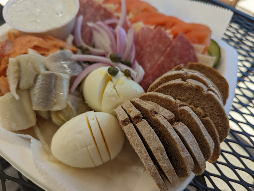 We love GroupOn because it gives us the opportunity to try places we ordinarily would not and then repeat if like it. Laurie and I each had an omelet, coffee, and an almond bar kringle I think it was called (we called it yummy!!) and enjoyed most everything on the sun-dappled patio. My Greek omelet, with tender tasty chunk of lamb and salty creamy feta, was great and reason enough to come back and soon! I DETEST over-cooked eggs and these were perfect! The accompanying salsa, however, seemed out of place. Ill likely be coming alone though. Laurie had an omelet with cabbage and pork that was less successful and she ended up eating about half of it. I was really hoping a Finnish Bistro would have a smoked salmon or lox omelet with cream cheese and green onion on the menu. Alas. Maybe thats just a Chicago or NY thing. Toast was OK but given they run a bakery too an option other than white bread would have been a nice touch. Coffee was fabulous and refillable but do not expect staff to come around with a coffee pot. Or another jelly packet. Or napkins. Or to check in after the first couple bites. Or anything for that matter. Unaware of protocol, it appeared from observing more seasoned customers we were expected to bus our own dishes. We presumed that, given service consisted solely of totin our plates to the table, tipping was unnecessary. We got a couple muffins to go. The lemon was very good the turtle so-so.