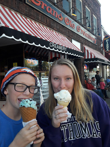 Ice Cream Ice Cream!! Who screams for Ice Cream? Of course I do! Ive heard many good things about Grand Ole Creamery from my buddies in the College of Pharmacy! I just havent had a chance to try it until recently. My girlfriend and I were in the area and was craving some ice cream. Weve been going to Izzys in St. Paul, which is delicious and worth trying if you havent been yet, but wanted to try somewhere new. We both hate Sebastian Joes, so that will never be an option. We decided to give Grand Ole Creamery a shot! Its located in a very nice suburban neighborhood near Saint Paul. Its right down on grand, which is filled with lots of good eateries like Cafe Latte. Amazing. I just love that part of Saint Paul. Its very calm, soothing, very nice place to chill. Upon entrance, you will most likely be greeted with a fairly long line, especially on nice summer days! The line can be a little slow, but it will be well worth the wait!! Upon entrance, you can smell the aroma of them making the waffle cones! It smells like heaven..all that butter and cream in the air. Amazing smell. We decided to try a few different flavors while we were there. We sampled the birthday cake, sweet cream and Black Hills Gold. After sampling, we decided to get 2 single scoops. My girlfriend got the birthday cake and I got the Black Hills Gold. They were both outstanding to me. So good!!! The birthday cake was really good. It was perfectly sweetened, unlike the overly sweet ones they make at Cold Stones Creamery. It truly tasted like my birthday while eating birthday cake flavor ;). So good. I got the Black Hills Gold, which was a very rich version of cookies and cream. That one was really good too. I usually dont eat or like Cookies and Cream, but upon sampling, I fell in love with this one. Black Hills Gold was very good! Its probably not the healthiest option, but man, was that one good!! Lastly, we both got it on the waffle bowl. We couldnt resist the smell. It just smelled so good, we had to get it. However, it wasnt that great. Partly was probably due to the fact that the waffle got soggy by the time we finished the ice cream. Id probably recommend the cone version if you want to try the waffle. The waffle isnt that special. I dont think Ill ever come across a cone as good as Ici Ice Cream in Berkeley. Man do I miss that place, but until then I will have to stick with Izzys and Grand Ole Creamery. I highly recommend Izzys and Grand Ole Creamery over the unoriginal Sebastian Joes. There is nothing special about Sebastian Joes. Id rather eat OTC Talenti or Haagen Daz than Sebastian Joes. If you want to try some unique flavors then go to Izzys. Though Grand Ole Creamery does have some different flavors like Taro, but a lot of their flavors are similar to each other. They have like 3/4 different takes of Cookies and Cream, which all taste similar to each other. Go to Grand Ole Creamery if you want high quality traditional ice cream flavors. You cant go wrong with either Grand Ole Creamery or Izzys, but you will go wrong if you go to Sebastian Joes.