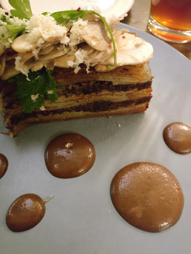 Service-10/10 Waiters are very pleasant and professional Food-10/10 (meat pie, interesting vegetables, and gnocchi) amazing flavor, if youre expecting large amounts this isnt the place, but the food is delicious! Atmosphere-10/10 Rustic and comfortable. Cleanliness-10/10 Very clean and neat. Hand soap smells good. Menu- 10/10 Simple and great not a million options but just enough to not overwhelm you.