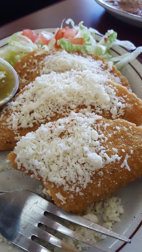 To start off, it took 20 minutes for our waitress to bring us water and 30 minutes for her to come and take our order. Our waitress was supposedly one of the cooks as well. My first friend ordered the fried tacos; when he asked for the fried tacos there was supposed to be 4; he ended up getting 3 regular soft tacos instead. The waitress stated that it would take longer to complete the correct order and hed have to wait for them to cook everyone elses order first before cooking the correct order. Because of the wait, he decided to just keep the incorrect order; he only got 50 cents off. My second friend with us is a vegan and wanted his dish to be without cheese. He specifically asked for no cheese and his rice and beans came with cheese. Also, he and I each ordered a side of guacomolé. After she repeated to us that there was going to be two sides of guacamolé, she only gave me mine. My friend asked for his guacamolé and she then stated that "there is no more" and walked away. Furthermore, she only refilled our water once throughout the whole dinner until I asked her to bring us a pitcher of water. I specifically asked for her to leave the pitcher of water at our table because she only came to our table when I would get up and get her attention and who knows how long it would take her for another water refill. She finally came over, filled our cups, and did not leave the water pitcher. Lastly, as we were finishing dinner, we slowly discovered that every other table had chips and salsa prior to their meals. I asked a table if their chips were complimentary and they said yes. Our table was not served complimentary chips and salsa. I ordered the enchiladas and they were very flavorful and good. Because of the horrific customer service, I will give this restaurant a 2 out of 5. None of us are planning on returning.