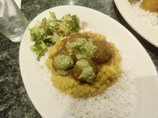 Ordered carry-out, one of the combos. Unfortunately, I wasnt in a position to eat it right away and had to take it home and reheat it but it still tasted great after reheating, which is rare for a dish involving rice. The seasoning on the meatballs was unique - in a good way. A subtle and interesting combination of flavors. The green chutney was my favorite, I only wish I had asked for more of it. The guy had apparently overcooked the lamb on the first batch so he actually ended up remaking it before I got there - that kind of attention to detail isnt something most restaurants give you. I only wish I lived closer to this place so I could eat from here more often. If you like Indian food and you like Middle Eastern food youll find flavors, youll definitely like the food here - it comes off like a combination of the two.