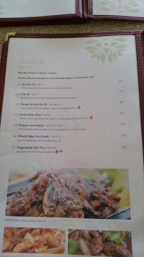 The parking can be a hassle, theres not a lot of parking due to small parking lots. For drinks you get no refill, it comes in a can and you can open it and fill up your own cup that they put on the side with ice inside the cup. The first time I took my brother and my cousin from France for their first time with Korean food, my brother ordered gingsang tea, and wanted refill and the dude told us, theyll have to charge extra, and no refill. Ill come again, but I do admit the price its kinda overwhelming. For four simple dishes fried rice, regular bibimbap, fried fish, naymyung that comes with four slices if small pork meet that has mostly bones total of $15.00 that I couldve made myself at home for ten times cheaper and taste better lol.. and two pop and a gingsang tea I ended up paying $67.00 eluding tips. The second time was great, one lady who was about my mothers age in her 50s, 60s was very welcoming, taught me Korean. Helped my friend pick a good dish, spicy tofu.