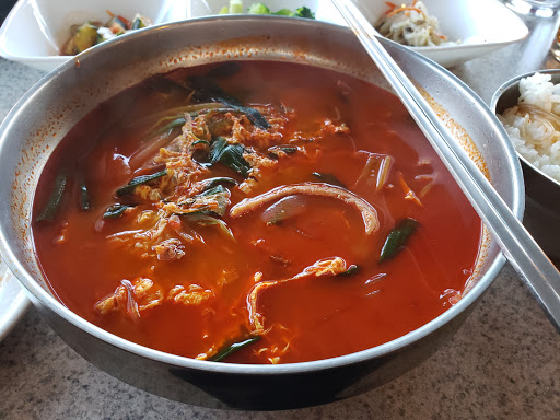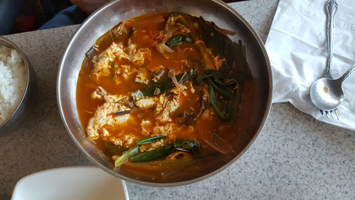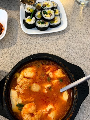 I lived in Korea for 6 years so I believe i know what good korean food tastes like. This was the first Korean place I went to and I was the beginning of my disappointment. The place smelled weird-- which ironically all restaurants in korea with good food do. The service was good and quick. The food wasnt quite right. My moms Squid-fried-rice 오징어볶음 or 오징어덥밥 had good color and consistency but was very watered down with spice (maybe its YOU and your damn midwestern taste buds). It has a lot of qualities but was missing flavor. My Soondooboo, was way off. WAAAAY too much tofu. I felt like thats all there was. I tried to eat it all but ultimately too much tofu, not enough broth or grease, and I like me some grease. The color of the broth was really on the creamy side. Go here ONCE to try it. GO her TWICE for the service and to be sure.