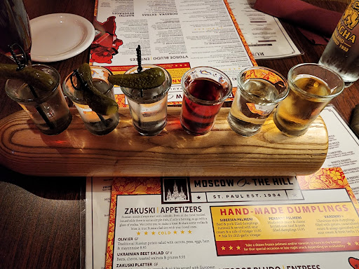 Great restaurant with traditional Russian menu located on Cathedral Hill in St. Paul. You cant beat the location. The neighborhood has a very nice, old St. Paul feel to it. Moscow on the Hill has an excellent menu with traditional Russian favorites as well as an amazing drink menu. Be sure to order the borscht. You might not see it on the menu, but I guarantee they have it and it is delicious. They specialize in vodka drinks, so be sure to give one of their custom vodka martinis or cocktails a try. If you are more of a beer person, dont overlook the Russian and Baltic brews on their drink list. You wont find them anywhere else.The staff were wonderful and friendly and the food was great! Definitely highly recommend.