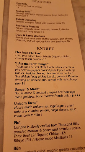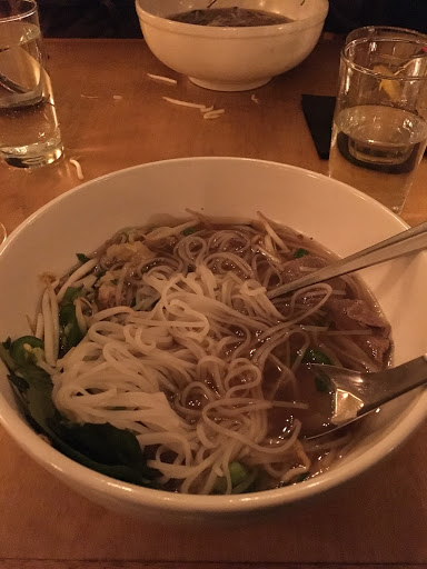 If youre looking for a real delicious bowl of pho, this is definitely the place to go. You get a very large bowl serving and its a good price for gourmet food that uses local produce (The ribeye pho is the best in my opinion, but the most expensive at 13.50 for a bowl). A plate of sprouts/limes/basil/jalapenos are provided along with chili oil and hoisin sauce. Along with their wide selection of alcoholic beverages, they also have delicious homemade house sodas including spicy ginger beer and lemon basil soda (my favorites). They cost 4 dollars a glass, but in my opinion its worth it for how tasty and refreshing they were. We stopped in a bit before noon and there were maybe 2 tables filled besides us. It slowly got a bit busier as we ate, and it probably keeps growing busy to evening, so keep that in mind if you want to eat here. All in all, it was fantastic. Friendly, quick service, delicious food and drink, and it only cost just over 50 dollars for three people who all ordered pho and sodas. I definitely recommend coming here.