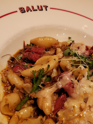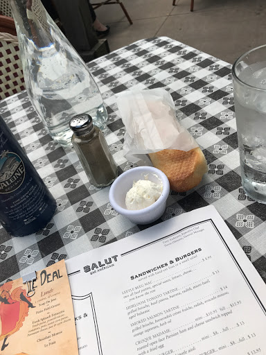 My girlfriend and I stopped by for a quick bite last night at Salut. We ended up settling for a simple cheeseburger & fries (split between the two of us), one glass of the cheapest wine, one beer, and a side of sweet potatoes. Food was fine - but nothing special. We were floored when our bill arrived as $50 in total. The house sauce that we "had to try" was itemized out at $3.00, and nothing special (we used the ketchup) . Caramelized onions on that burger? Another $2.00. Your food is of okay quality (burger was fine - fries were below average), but your service and prices leave much to be desired. Your prices are outrageous even before you start to nickel and dime on top of it. In the end, its that last piece on the nickel and diming that we will not return to Salut. A good restaurant would offer things like the house sauce free of charge to its customers, not for use as a cheap cash cow to rack up the bill. For $50 we will grab our meal at a steak house next time instead.