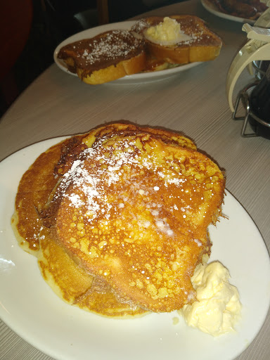 Waited 15 minutes to order then 45 minutes for the food, which was poor quality. Over medium eggs were very under cooked runny whites and over cooked pancakes.