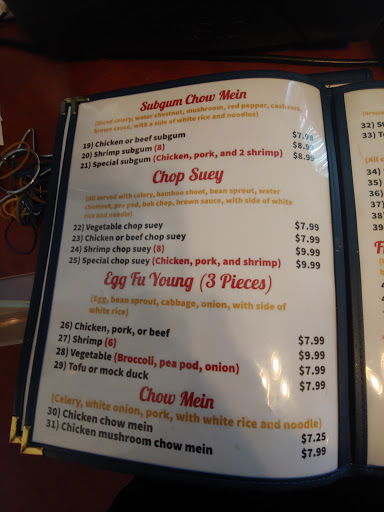 I always get the buffet. The sesame chicken here is my favorite of all the Chinese places that Ive been to. Each dish is full of spice and flavor, unlike bland dishes that Ive had at buffets elsewhere on Robert Street. Sometimes, you have to ask them to refill something on the buffet, but they are always happy to do so. Their buffet prices are reasonable.