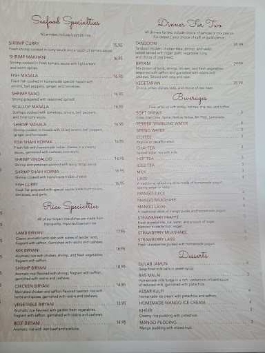 Love this place. One suggestion, go during the lunch buffet. You would get more choices (and amount) for your dollars, especially if you are a first timer. Staff is friendly, clean, a bit tight place, and the variety of food during buffet for indian food is great as well. The only negative thing during the lunch buffet ......it could be packed with people, and you have to wait in line. Not only to wait in line to be seated, but to wait in line to get food. I have to say is the size/space is increased by another 25-50%, i think it would beneficial. More cost for rent, but they could accommodate more people, and faster service. Imagine placing the food in the middle and people can grab food from left and right instead of from one side only. Faster service, more customers, and more income ??? hahaha.... Great food! recommended !