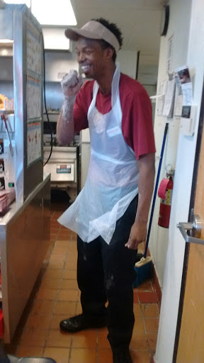 Service was slow. Cashier acted as though she was doing me a favor taking my order. Absolutely no courtesy extended. Dining area including every table top was dirty. Had to wipe myself.