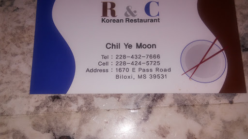 R&C is a quiet, cozy, family owned Korean restaurant that offers some of the best delicious food of South Korea. Ive been going to this restaurant off and on for several years now. Everything is prepared fresh, and I have had no complaints about the quality of the food. My favorite dish is the pork bulgogi. It is prepared spicy, yet tolerable to most guests. R&C is what youd call a "hole in the wall" restaurant. The dining area is small with about 10 tables. The food is excellent, but it comes at the cost of a hefty wait when theyre busy. They run the restaurant with only one cook and server. Its practically a two man show. Like I said, the wait times can be long, but they bust their butts, work very hard, and the food is definitely worth the wait. The prices are very reasonable, and the portions are huge. They serve your entree with several complimentary side dishes, as per Korean cuisine, and they include the following: fish cake, pickled radishes, pickled cucumbers, bean sprouts, kimchi, and many others. They serve canned soft drinks, sweet tea, and beer. The tea comes with free refills. This place is very popular with the military (since its a block away from Keesler Air Force Base) and somewhat popular with the locals. Korean cuisine may seem strange at first to some, but its definitely worth trying. I guarantee R&C wont disappoint you.