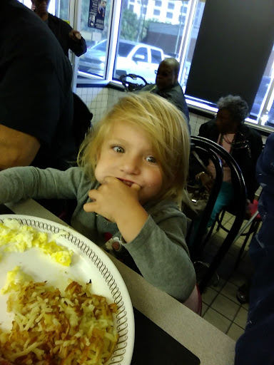 After a long day, walking , gambling and doing things we had a later hunger sneaking up on us and had to make a decision on what to do. First we checked the food in the hotel, but for the price the food looked not filling enough. We walked over to the Waffle House. We were greeted by all female workers with a : Hello , welcome to Waffle House. And it was friendly up-beat greeting , which I liked. The place was clean and all the employees looked well dressed for the job. It seems like everybody had fun. We got a table right away and were asked for what we want to drink on the spot. Checked the menu and went with the Bacon Cheesburger. AS a side I took hash browns ( they do not offer fries). Food was done fast. They forgot the onions, but delivered them hot and ready in a minute. The burger was good, hash browns were huge and good as well. Never forget, that we talk about the Waffle House here. Price was good as well. Spend 12 $ for the entire thing and the hunger was gone, the mood was up and were ready to turn in. I like this place. Across the Beau , where we stay when we are in Biloxi. Good place to feed your hunger in between or for breakfast.