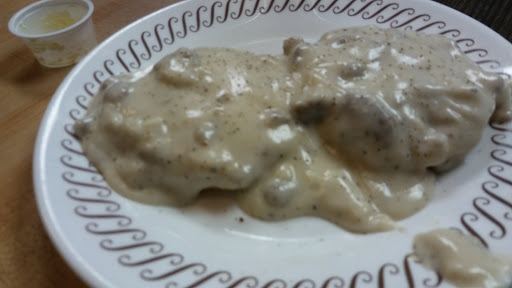 Typical Waffle House, nothing fancy, griddle cooked food fast. Average service, cleaner than most.