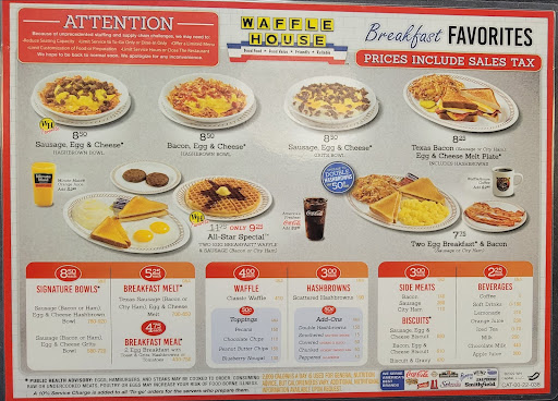 Typical waffle house. Fast and inexpensive. I enjoyed my 2 egg breakfast. The coffee was delicious.
