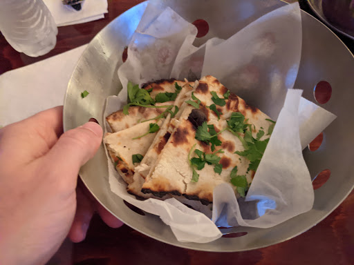Samosas were bland, paneer Tikka Masala tasted like BBQ sauce, vegetable korma was not great either. Goat curry was ok. Overpriced for portion size. Be aware all items are ala carte. You will be charged separately for any rice or naan you order. The server was nice, obviously answers questions about "extra charges" often.