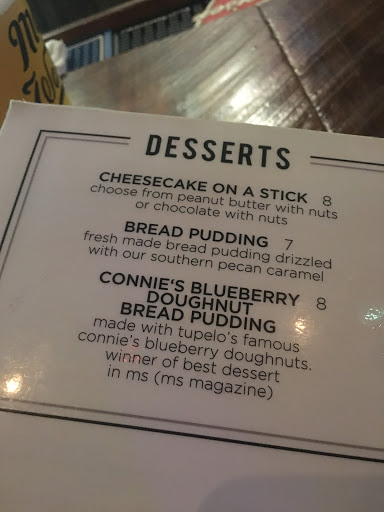 From out of town. Went there tonight after a long drive . It was full and we were asked to sit at the bar to wait for a table. All good so far! So we sat there completely ignored .. Even when we smiled and made eye contact with with bartender, she ignored us over and over again.. So we left after sitting patiently for about 15 minutes.. She walked past us over and over again.. Yes it was busy but we felt ignored and unwelcome! The food may be good, but we didnt get that far ... This server/bar tender needs a lesson in how to simply say "Im sorry to leave you waiting .. Ill get to you soon" that may have kept us waiting a little longer, but never, ever ignore your customers.. Bad experience on a rainy night when you are hungry, tired and looking for a welcoming face in Tupelo!!!