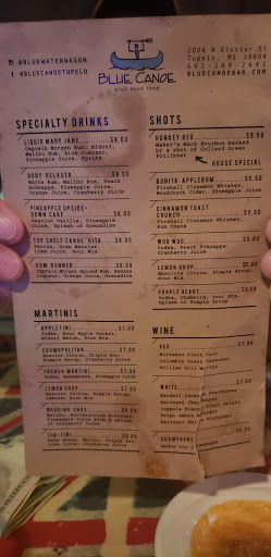 There are a few reviews here that should not hinder your decision on choosing The Blue Canoe on you visit to Tupelo. Firstly, it is a very friendly place with a unique atmosphere. The staff there have always been nothing but professional and courteous and you have a more personal experience than you would a chain restaurant. If you dont want to try the best burger in Mississippi then maybe you listen to some other reviews because it is awesome. They also have a selection of delicious soul food and if you prefer ask your server for the Grouper Salad, thats what I get if I want to eat light. If you want to skip the calorie counting and enjoy food the way its meant to be enjoyed then get in here and see for yourself. Someone also commented on the yocal locals? not true. Every locally owned bar and restaurant in America have its local joint, you can learn more about the area in 5 minutes at a local joint than you can searching online. They wont bite, take off your tie, roll up your sleeves and stay a while and youll be glad you did. They also have a great beer selection some check them out.