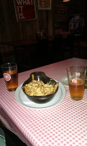 On a business trip to Tupelo, in search of decent microbrew, a local pointed us to Blue Canoe. This place is _amazing_ if you dont mind the calories. For the Canadians in this southern city, theyve got Poutine, but they also have their own country variant made with ground sausage and mild jalapeno (their "crack" sauce, which is truly crackalicious). All five of the folks in our dinner party got something different (okay, three of them were all variants of the Smash Burger) which were all eaten with zeal. I enjoyed their Turkey Day sandwich, which was huge and perfect. The waitress was friendly and prompt. Refills of my sweet tea were frequent and without having to ask. Food was hot and arrived timely. I have to admit that in interacting with the waitress to sort through the many delicious-sounding things on the menu, she started to actually exhibit some of her own quirky personality. I kind of developed a little crush on her... The price of all of the food was very reasonable. My turkey and cranberry sauce and dressing sandwich, replete with a full order of onion rings, was $8 and change. The decor is... local color. Wooden tables and picnic benches covered in graffiti. But you didnt come here for the decor, so you wont mind.