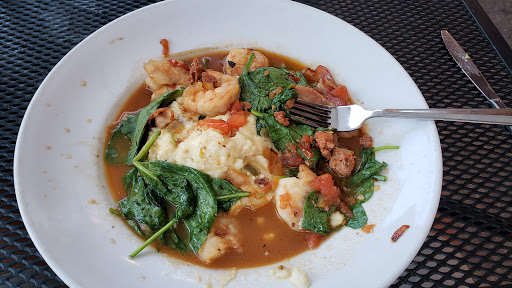 Worst shrimp and grits Ive ever had. 1. food came out cold, not even room temp 2. shrimp and grits were absolutely tasteless, no salt pepper cheese or seasoning period 3. bacon was all fat and white in color, no crisp yumminess 4. broth tasted like warm salt water 5. served with a piece of bread so small and mushy sitting on top of watery sauce Quite possibly one of the worst dining experiences Ive had.