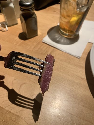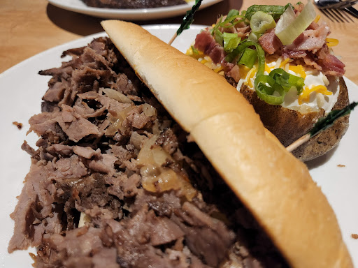 Dinner with my dad tonight was absolutely fabulous. He had the steak skewers, shoestring fries, and wedge salad. There was plenty to eat and still have take home. I had the NY strip and it was divine. The loaded baked potato was more loaded (to my complete satisfaction) than any Ive gotten anywhere else. We were in town over night and didnt know where to go eat that was near the Hilton Garden Inn, but the smell from the parking lot made me want to look somewhere very close. I think we found it. Id highly recommend anyone else to give this place serious consideration as a wonderful dining option.
