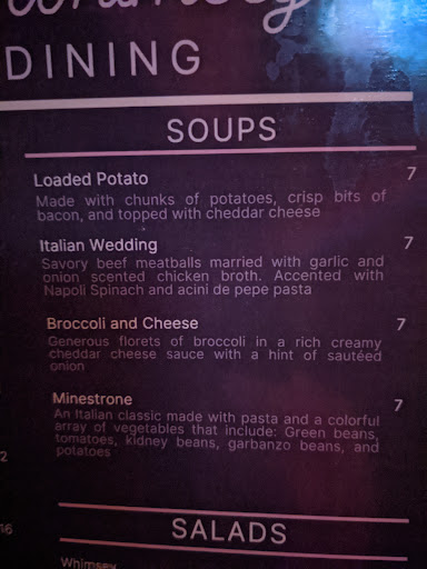 Ive been a customer of The Whimsey for many years. Their entrys are so large, I always take home leftovers, and I weigh over 200-lbs. So when dining at the Whimsey, its like getting 2 for the price of 1. They have the best Lazogna I have ever tasted. Many times I bring guests to the Restaurant for the first time, and they become regular customers.