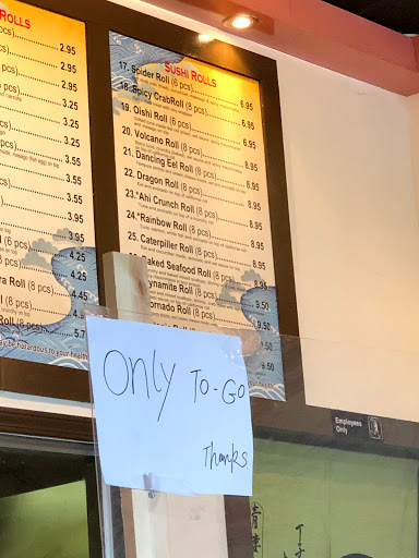 Food comes out confusingly and at separate times. Any kind of meat with fried rice is NOT cooked correctly. The shrimp just sits on top of fried rice instead of being cook mixed in and is in a tiny to go box, even if you order to eat there. It doesnt taste bad, but it is limited and Ive had much better sushi and actual mixed fried rice with meat in it. The tables are really close together. The aesthetics arent terrible, but you can see white bleeding through the art.