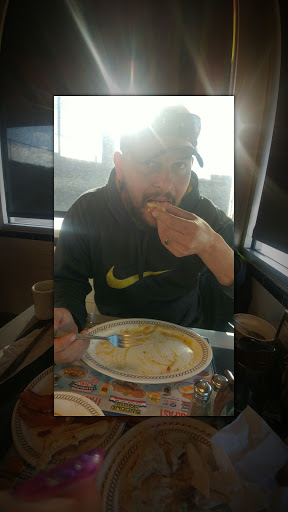 Went there after a long13 hr car ride. Got eggs and hashbrown with bacon. Daughter got the kids waffle meal. We sat at the bar area. Waitress didnt understand why we wanted to add eggs to the meal. So i was frustrated and kept my nose in my phone because i was sleeped deprived and thought my words would come out rudely. We get our food finished and waited for our daughter. We had looked up now that i had some energy and food in the system. Started to watch the cook. He was cracking eggs in the pan and then he took his hand (with gloves on) wiped the counter woth his fingers then attended to the eggs and dumped them on the plate he straighten the eggs up with the same hand and same pair of loved he just wiped the counter with. Then he served it. I told my husband to watch and then the cook with the same nasty gloves starts prepping a plate for a blt. He then goes and grabs the bacon from the cooler and puts it the pan he ust made eggs in...meanwhile still wearing dame gloves. At that point told my daughter to stop eating. My husband asked for the manager. Guess who that is....the cook. My husband told him why we wont be paying for this bill and the cook said fine just void it out. Then changed his gloves. Nasty Nasty Nasty.