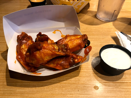 Carry out, they make you stand there for 5 minutes before they acknowledge you, then answer the phone and put in that order before they will get your order. Tried to pay with cash and they had to get the manager with a card. Forgot my ranch dressing and celery. Then they want a tip for carry out after you overpay for their crappy wings