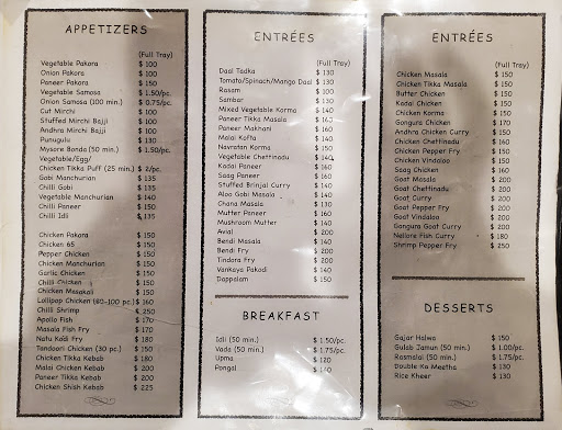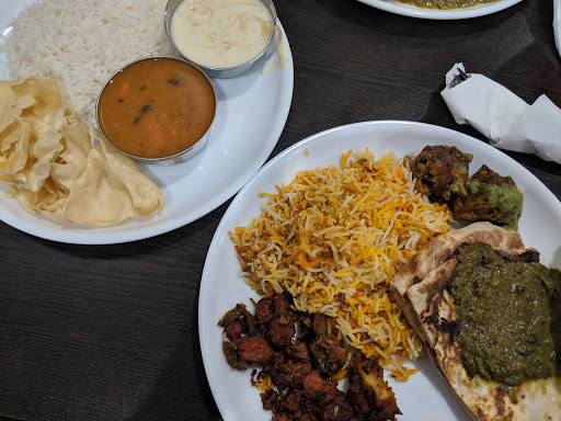 This place came highly recommended from my father who is a huge foodie. The staff is very polite though not fluent in English so there is a language barrier. We sat down and were given plates that had clearly just been washed as they were dripping wet but some of the plates still had food on them! After telling one of the employees of this he literally went two tables over and hand dried the plates off and handed them back to us! We refused to take the plate as we all watched him do this. Eventually we got clean plates (we think). My dad talked up their food game quite a bit so that may have led to the disappointment (I know he was crushed by the end of this). We ordered the goat biryani which was delicious but there was very little goat meat in the dish, mostly rice. The other dishes we had lacked flavors becoming of Indian food. This place is managed by South Indians so northern style dishes are not always prepared the same as a Northerner would do but this was just so below acceptable. One dish was supposed to be spicy and it was not, furthermore the gravy tasted like Chef Boyardee sauce which upset us because it was sweet and tangy vs spicy and robust. I hope the next time I go there I have a better experience and would like to chalk this up as a one off but the experience was so bad.