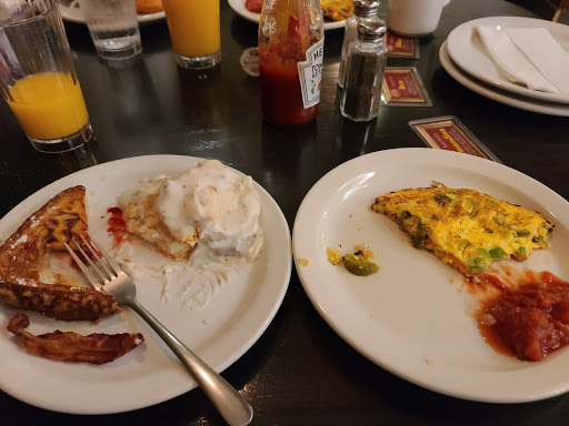 We enjoyed the food here. It is a large buffet but it has the same food on each side. More like a double buffet. We went for lunch, be sure to have a Branson coupon book because it has a buy one get 1/2 off the other meal coupon. If you like the place and plan on eating there again grab a few coupon books. You can get the coupon book at various hotels where they keep the brouchers a and tracts. We got ours at Dennys the night before. The buffet is large, it has a large salad and fruit bar also that was very fresh and good. Think I liked that best! You can expect country food like, meatloaf, roast beef and ham, mash potatoes, gravy, cat fish, rolls and biscuits, okra, Mac and cheese, large var of side veggies, cookies, cobblers and ice cream. Didnt get a chance to eat breakfast there but wish I did! Drinks cost extra and are not included. So if you enjoy coffee with your cobbler plan on paying extra besides your drink. Water is free. I seen some upset about the coffee. Expect larger crowds but plenty of seating. A bus full of senior citizens pulled up as we were leaving (80+ people) All in all the food is good and plenty to choose from even for the picky people. Diabetes friendly food also. Handicap accessible, Kid friendly, high chairs, plenty of room for people in wheel chairs or scooters. Easy to get in and out for handicapped. They also have separate big rooms for larger parties or privacy rooms. Large parking lot for buses and vans.