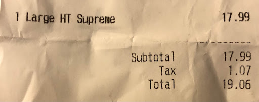 $50 for two pizza, the meat pizza was dried and shriveled, the other pizza was ok. Waited a long time in line for the girl working to explain her dating situation to her coworker, but I wasnt in a hurry so didnt really mind. I wont be back considering ive never had a bad pizza experience any where else. Maybe I just went on a bad day.