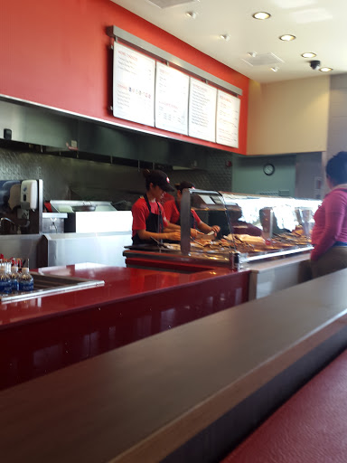Ordered carry out off their online app and when I arrived to pick it up there was a line outside the door. There were only 4 employees working. Which itself was a surprise. When I went to get my order they said my order never came though even though I had the receipt. There was NO manager present and I had to wait another 25 minutes for them to make my order. They seemed put out at making my order - Im not sure if I will ever order online again and I may try another location that has a more pleasant disposition. I cant imagine waiting in line to order my food with only 1 person serving, 2 cooking, and the other at the register!! I gave it 2 stars because the food is good.