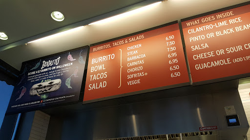 As of now, at the end of January 2015 the location shown on the map for this Chipotle is wrong, however it is nearby and does exist. The map currently shows it next to a Panera in a strip mall. It is within close walking distance of that map location, but in its own building between the Kohls (in the same strip mall) and a water drainage pond. It appears to be a newly opened restaurant. The new employee who made my burrito couldnt figure out how to fold the tortilla and tore it. When she emptied the contents of the burrito into a new tortilla she left about a quarter of it in the original tortilla and I was left with probably the smallest Chipotle burrito Ive ever had. I have only given the restaurant three out of five stars because of this, and the relatively slow service on a slow night compared to the speed and efficiency of most Chipotles.