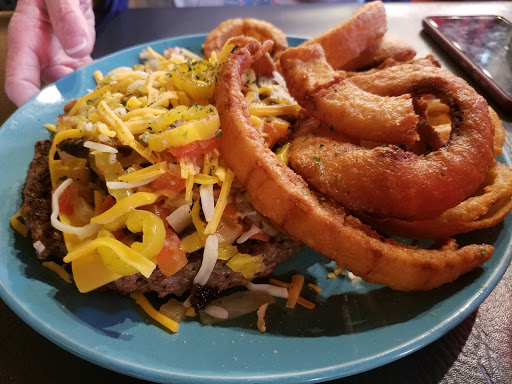 My wife and I went here on a whim and we were very happy with our choice. This restaurant has more of a pub feel to it, than anything else, but it serves very nicely as a relaxed sit down restaurant. The prices seem a little high, but that is only because every single meal is large enough to feed 2-3 people. My wife and I didnt realize this and we ordered two full meals and an appetizer (bacon cheese fries). The meals came with a salad as well. After finishing our bacon cheese fries (enough to serve 4 adults as an appetizer) we then ate our salads (each big enough to serve 2 adults or big enough to eat as a main course for one adult). At this point we were getting so full that we had concerns about being able to have any room left for our main course. We decided to not finish the salads in order to save room. We are glad we did, because the main course came out and I think each burger must have been 1.5 lbs of beef and then all of the other toppings, etc. They were so big that they filled the plate up entirely and made the rather large buns look rather small. The taste of everything was delicious. The bacon cheese fries had a good saltiness to the very crisp bacon and the salads were crisp and had lots of extra bell pepper chunks and other fun things. The burgers were also amazing. I got the Jerris Bulls-eye and my wife Got the Gyro Cheese Burger. The Jerris Bulls-eye was perfect because it was so delicious, but also since it didnt have a bun it was something that I could easily take home and reheat. My wifes Gyro Cheese Burger was also great, but so large that it was difficult to keep it all together while eating. Overall the experience was great and we plan to go back again. However, the next time we eat here we will split a meal instead of making ourselves uncomfortably stuffed.