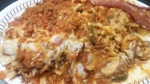 Smothered Covered and Chunked always a winner!! Food as youd expect, quick service. Only slightly annoying had like 6 or 7 staff in and they were not busy so very loud back and forth between employees. Everybody has to kill some time/steam though, so somewhat understandable.