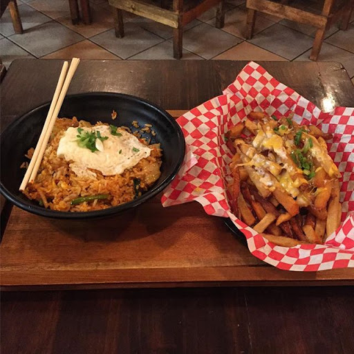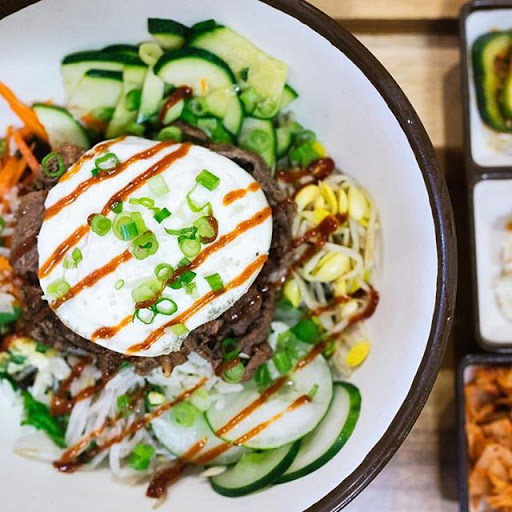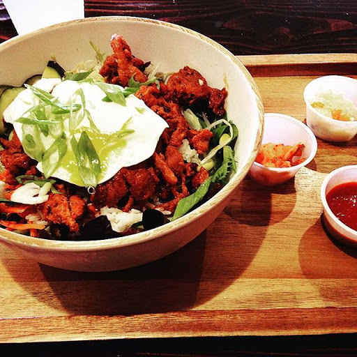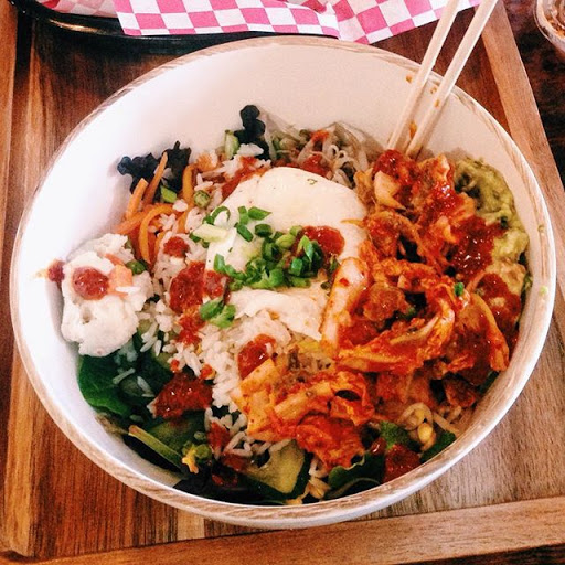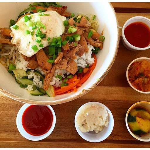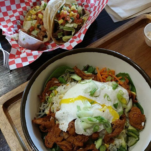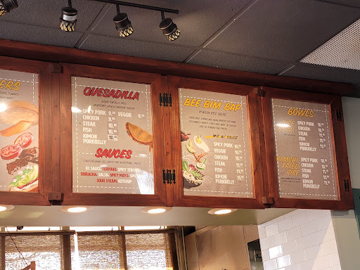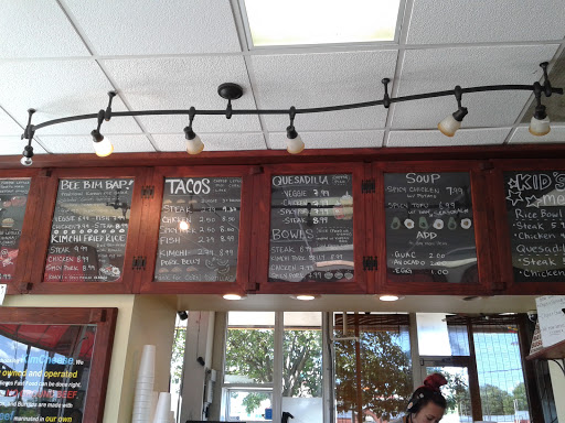 Wonderful fusion of Korean flavors and Mexican dishes. You have your burritos, quesadillas and tacos with marinated rib meats! Theres also a selection of bowl options, from the traditional bee bim bap to open bowl burritos. Theres even a unique take on a burger that is well worth the chance to make your tummy happy. The place is small (go to their other site if you have a big party) but if you want something quick for lunch, its a great spot!