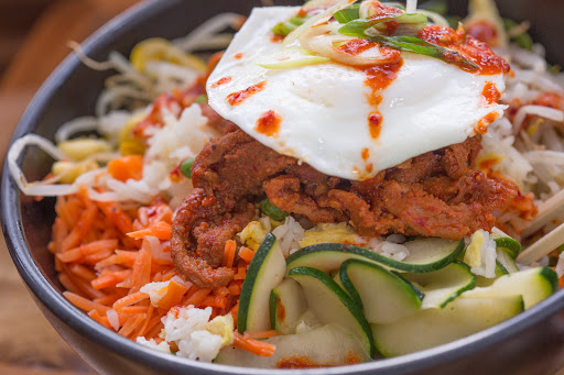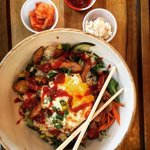 This place has great food and they get it out to you pretty fast. They really expanded my palette with Korean food by bringing in with food that I am more familiar with. Their burgers are great but I truly love their steak bowls, mixing up all the ingredients and having the runny fried egg cover everything is perfect. I have only had one bad experience with the place and the manager fixed it in a second. It is part of my lunch rotation. Plus they have a pretty good rewards program that helps to bring me back.