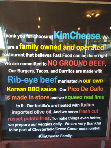 Kimcheese is one of our favorite go-to spots on date night! Their tacos (I get the steak, hubs has the spicy pork combo) and you seriously cant beat their prices. Friendly service and always have a great play list, too. Love this place.