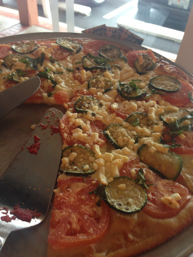 Smells delicious when you walk in. Seating is limited. We got a large Caesar salad and the portion was disappointing for the price. We couldnt feed our family of 5 with the large salad. We were attracted to this place because of the gluten free pizza and dessert option. Gluten free pepperoni pizza was good. They offer wine, local beer and bottled Fitz sodas. If you want a pizza take out option this is a good choice, not so much for eat in.