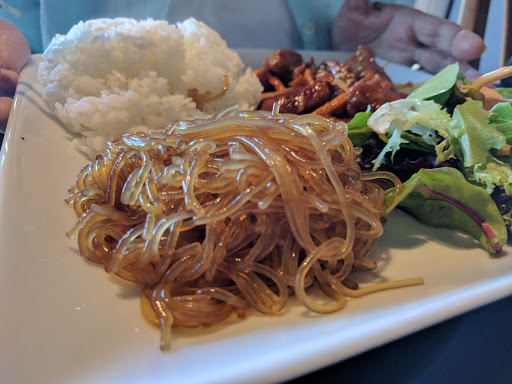 The food was very flavorful. My husband and I were very impressed by the quality. The service could be improved in terms of refilling water and such, but it wasnt so bad. We had Yakisoba chicken (stir fry noodles). The chicken was dark meat, which was traditional and expected. Lots of flavors. Another dish was Spicy pork Bibimbap (hot stone bowl). That dish was beyond amazing. Lots of good flavor. The Korean side dishes were also yummy. Nothing offensive (fermented stuff could be funky if not done right). The spiciness was right, too.